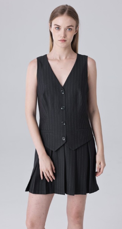 PREMIUM NIRVANA PTE LTD - V-neck Stripe Pleated Mini Vest Dress